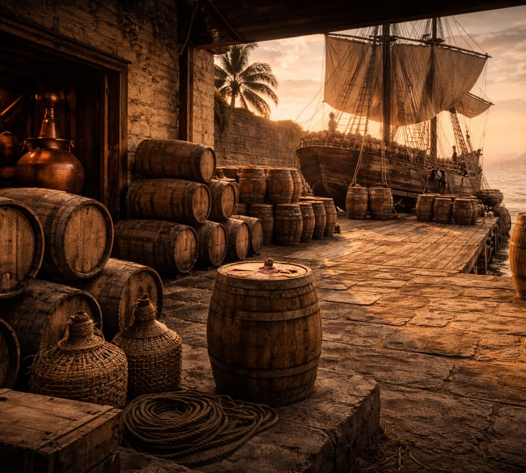 Alcohol shaped global trade systems — for better and for worse. Distillation technology standardized potency and shelf stability.