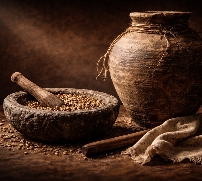 Archaeological evidence suggests that humans were intentionally fermenting grains and fruits as early as 7,000–9,000 BCE. These processes likely began accidentally — wild yeast interacting with stored grains or fruit — but were quickly recognized and refined.