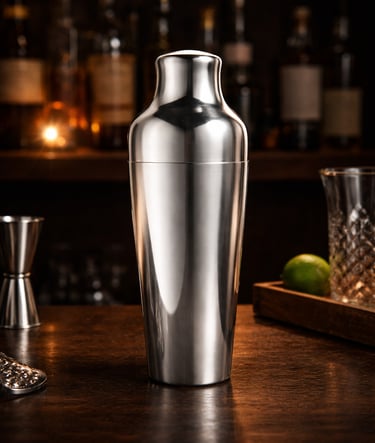 A Cobbler shaker is a three-piece system with an integrated strainer and cap. It is mechanically forgiving but slower to chill and more prone to cap binding.
