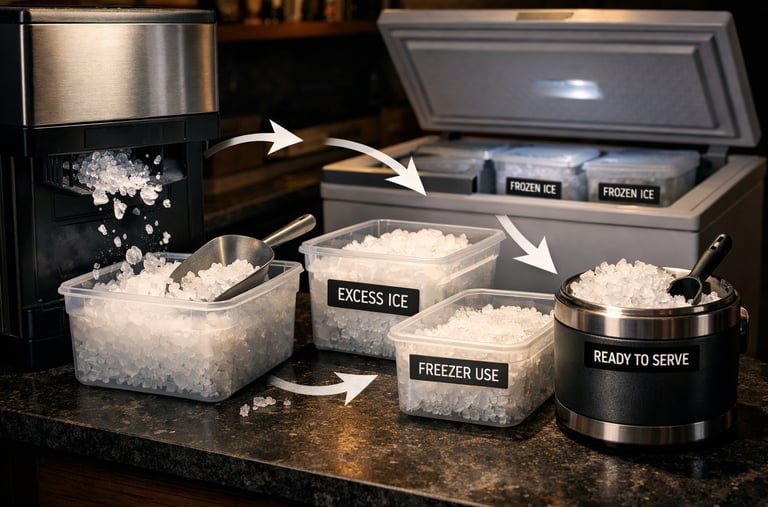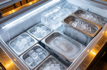 For directional ice systems and automatic clear cube machines, the catch trays are not true long-term storage environments. They produce. They do not preserve.