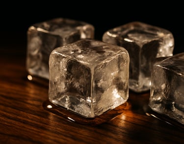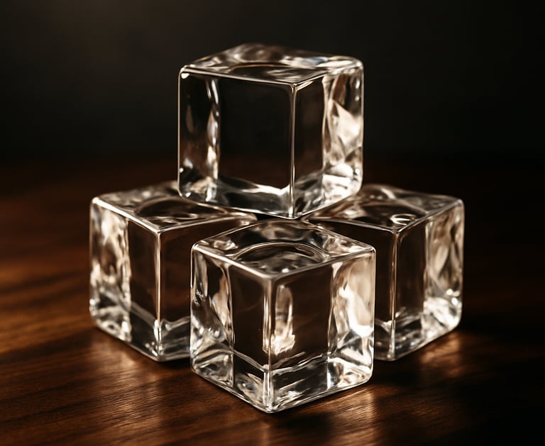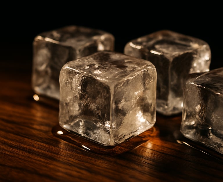 Clear ice is made by freezing water slowly from one direction, pushing out bubbles and minerals, so it ends up dense and transparent. Cloudy ice forms quickly, trapping gases and impurities that give it a cloudy look.