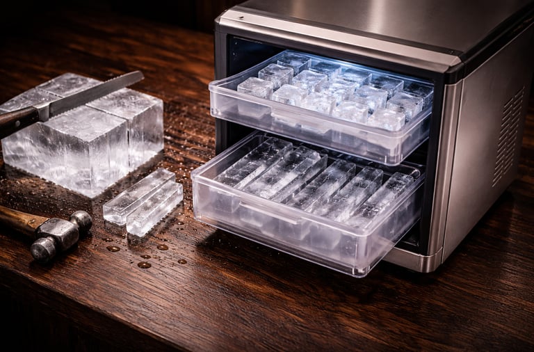 Built for full-block directional freezing, allowing custom cube and spear cutting with maximum structural control.