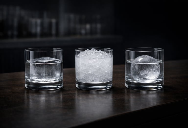 Its size, density, and clarity determine dilution rate and temperature curve. Poorly formed ice melts rapidly and destabilizes balance. Properly sized ice preserves structure.