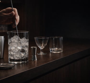 Stirred drinks require controlled dilution without aeration. A proper mixing glass allows precise temperature management while preserving clarity and texture.