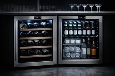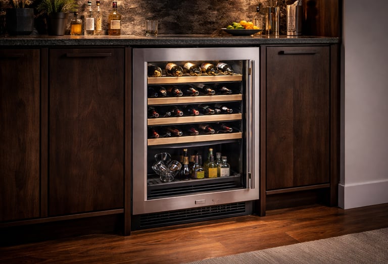 If your bar serves both reds and whites regularly, a dual-zone wine fridge provides practical flexibility.