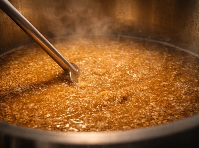 Boiling transforms sweet grain liquid into structurally balanced wort ready for fermentation.