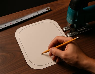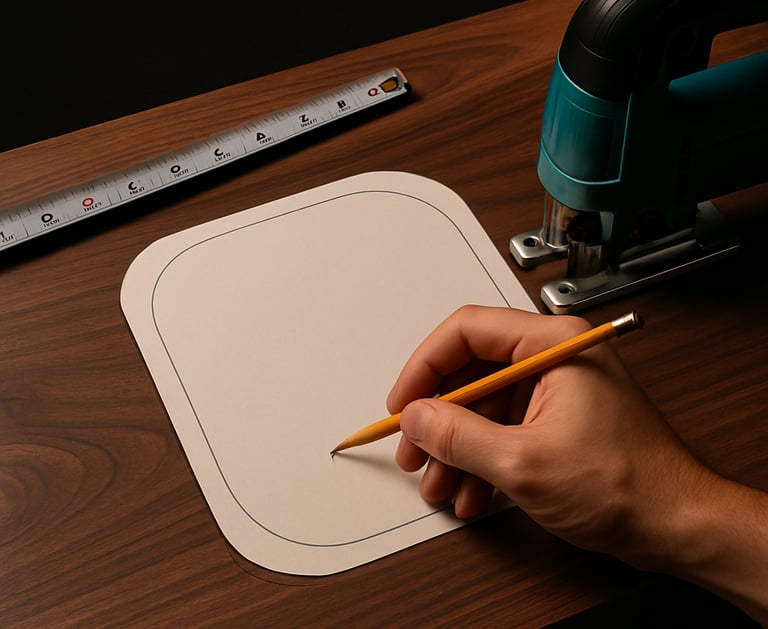 2. Trace the sink template carefully on the countertop. For drop-in sinks, cut about 1/4 inch inside the template edge.