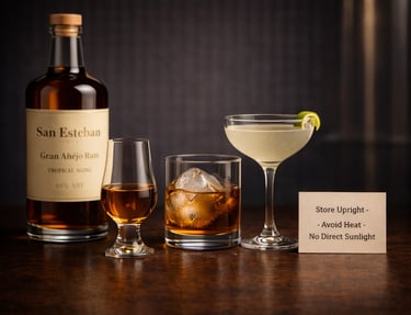 Matured for extended periods, aged rum emphasizes oak influence, oxidative depth, and integration.