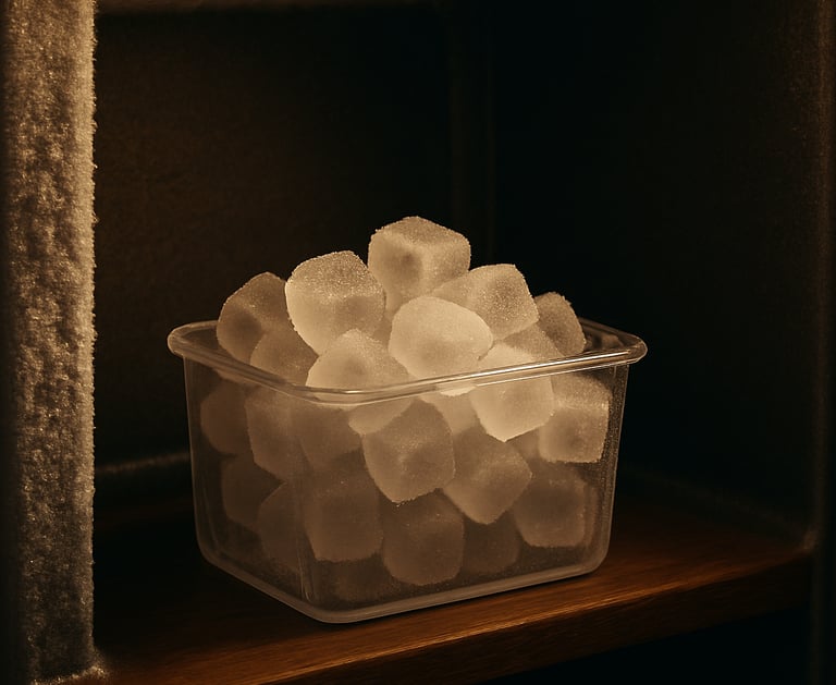 - Leaving ice cubes exposed on shelves where moisture can settle and freeze.